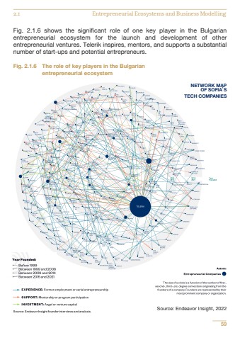 Fig. 2.1.6 shows the significant role of one key player in the Bulgarianentrepreneurial ecosystem for the launch and development of otherentrepreneurial ventures. Telerik inspires, mentors, and supports a substantialnumber of start-ups and potential entrepreneurs.Fig. 2.1.6 The role of key players in the Bulgarian entrepreneurial ecosystemSource: Endeavor Insight, 2022592.1 Entrepreneurial Ecosystems and Business ModellingNETWORK MAPOF SOFIA%u2019S TECH COMPANIES